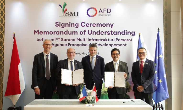 Jakarta, 28 Mei 2025 – PT Sarana Multi Infrastruktur (Persero) (“PT SMI”) dan Agence Française de Développement (“AFD”) melanjutkan kemitraan untuk memperkuat kerja sama dalam mendorong pembangunan berkelanjutan, mitigasi dampak perubahan iklim, dan pembiayaan hijau di Indonesia. Kerja sama ini tertuang dalam Memorandum of Understanding (MoU) baru, yang ditandatangani oleh Direktur Utama PT SMI, Reynaldi Hermansjah dan CEO AFD, Rémy Rioux, pada hari Rabu, 28 Mei 2025, di Hotel Fairmont, Jakarta. Penandatanganan MoU juga disaksikan langsung oleh Duta Besar Uni Eropa untuk Indonesia dan Brunei Darussalam, Denis Chaibi.