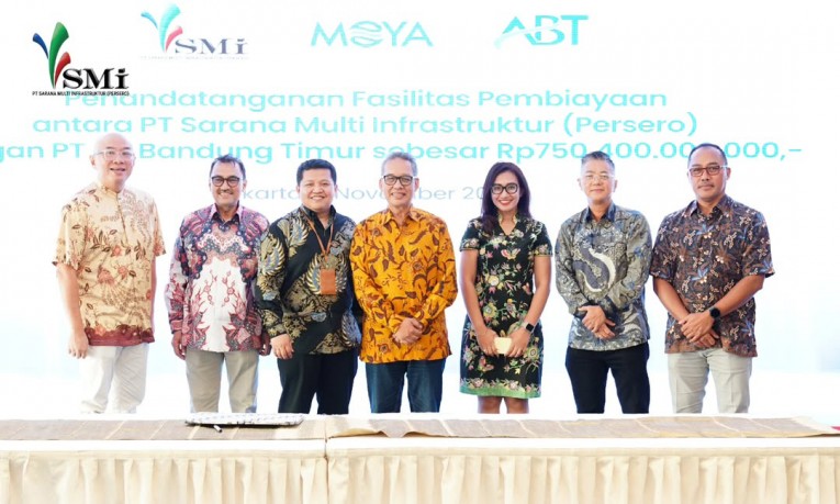 PT SMI officially signed a financing agreement with PT Air Bandung Timur to support the drinking water infrastructure development project in East Bandung. In this agreement, PT SMI was represented by Ekha Yudha Pratama, Head of Financing Division 2. Meanwhile, PT Air Bandung Timur was represented by Mr. Moh. Selim and Mr. Darmasen Anwar on behalf of the ABT Board of Directors.
